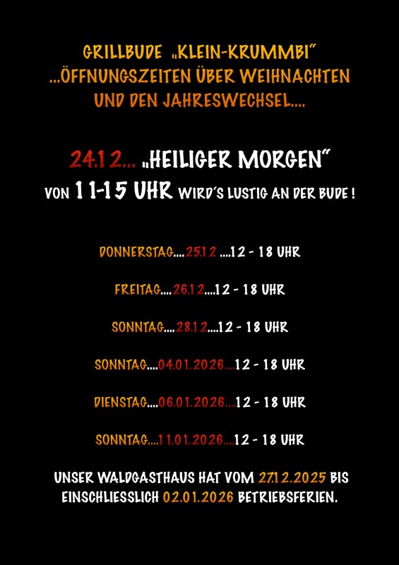 Für Reservierungen nutzt bitte wie gewohnt das Kontaktformular oder schreibt uns an info@waldgasthaus-krummbachtal.de.